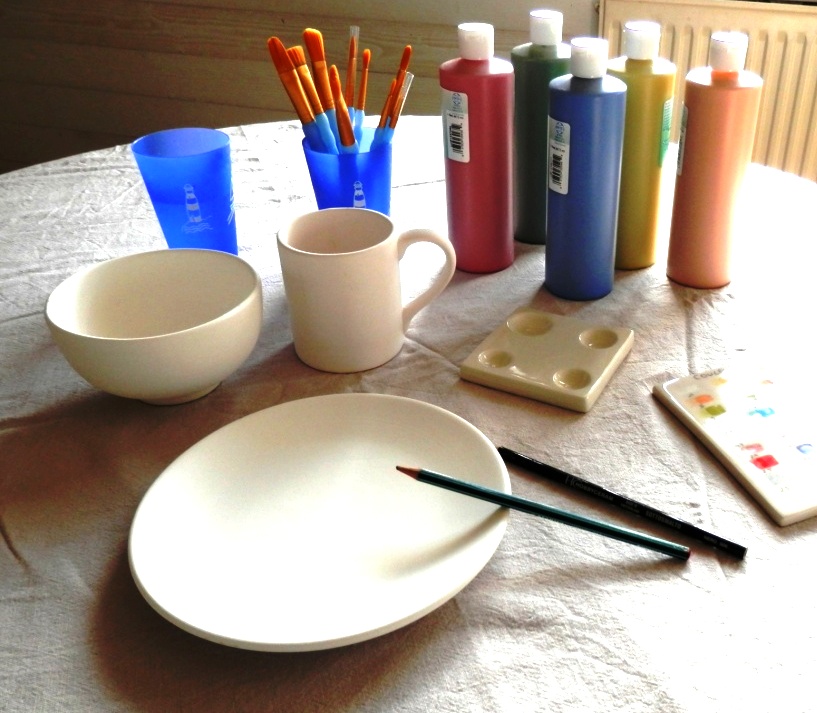 Choisissez votre faïence à peindre : tasse à thé, bol, mug … et personnalisez là avec vos couleurs et motifs préférés. Un atelier convivial et utile, les faïences passent au micro-ondes et au lave-vaisselle.