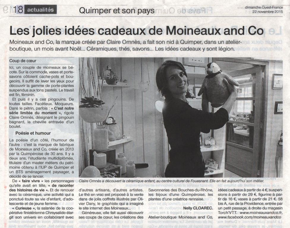 Moineaux & Co a eu les honneurs de la presse dimanche dernier ! Un très bel article rédigé par la journaliste Nelly Cloarec.