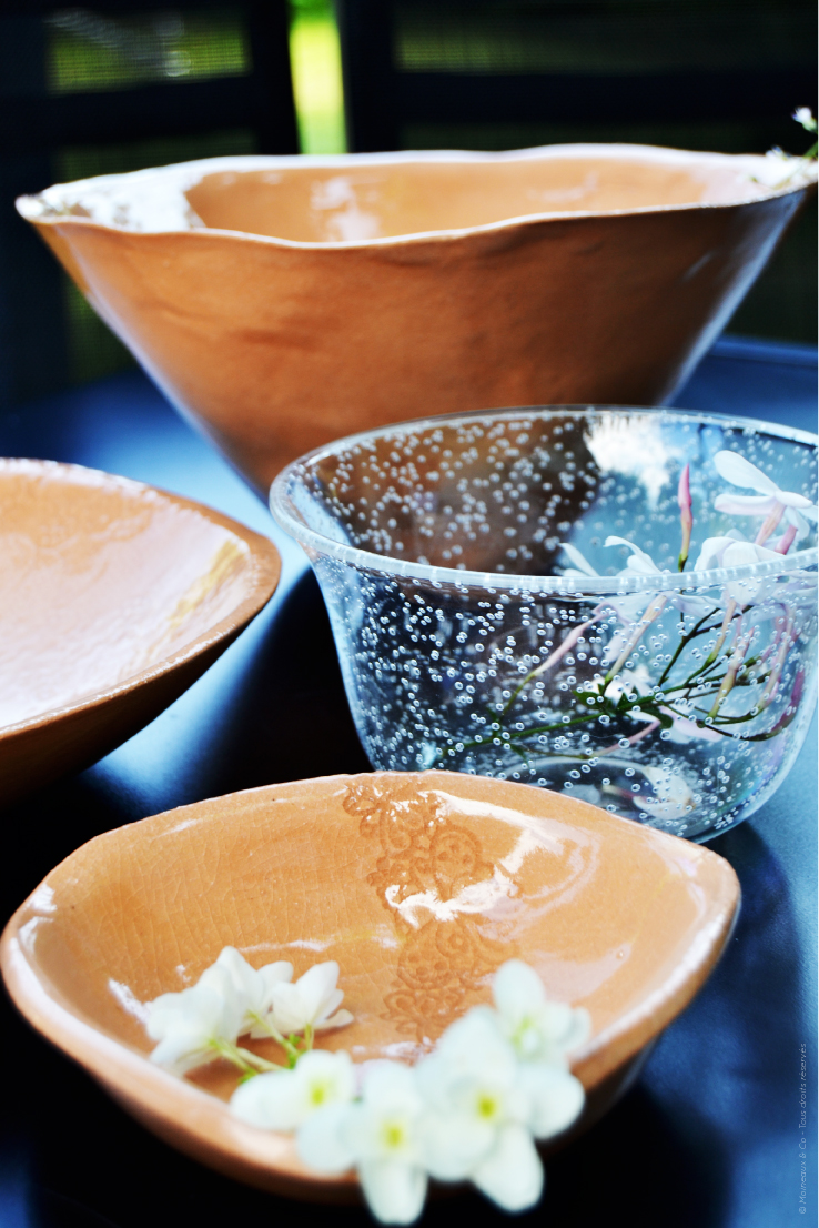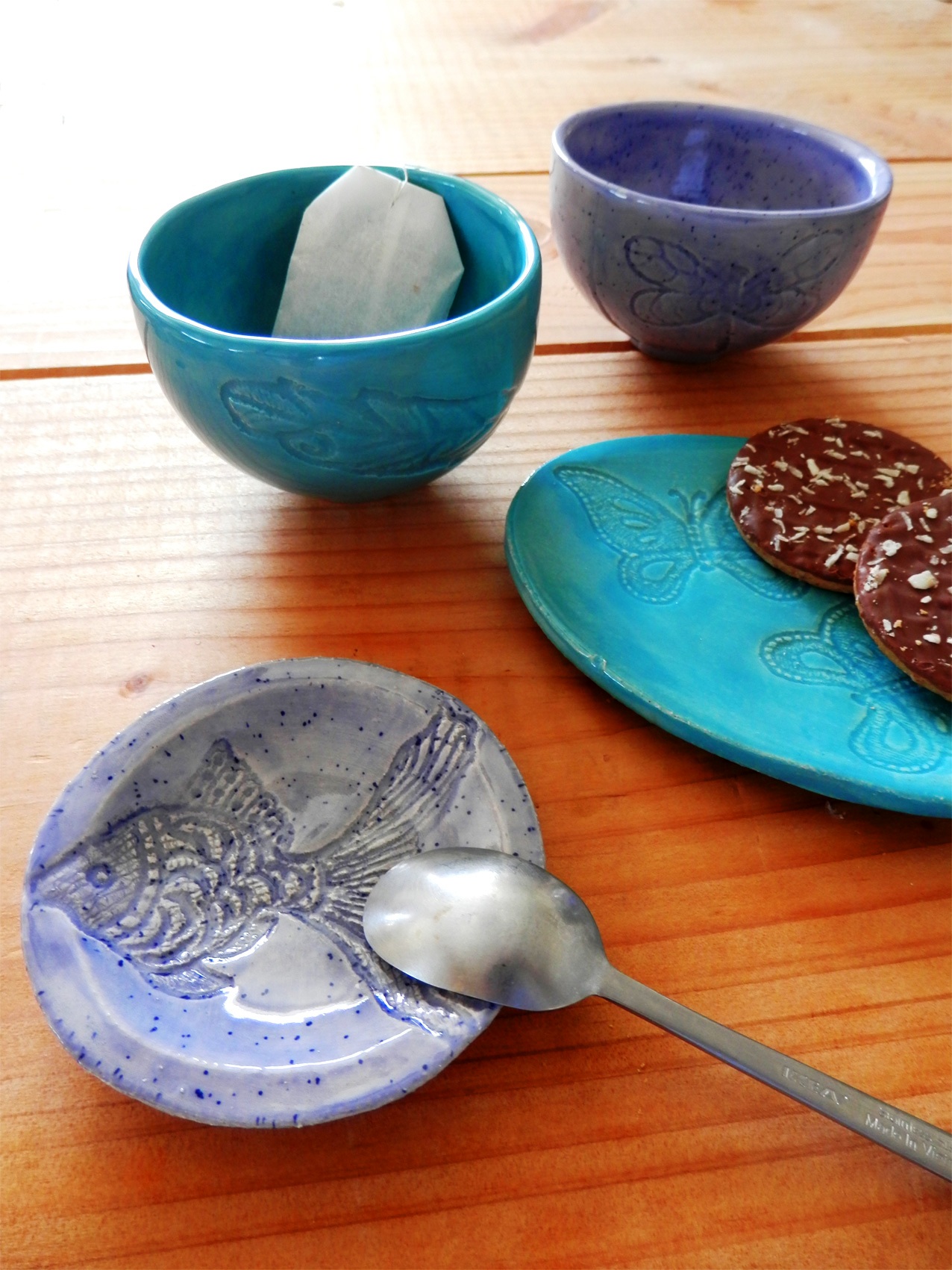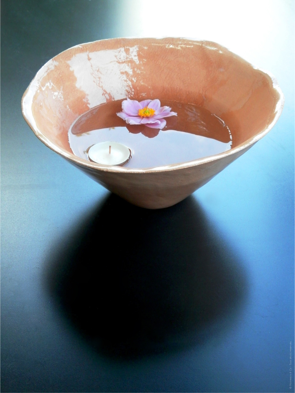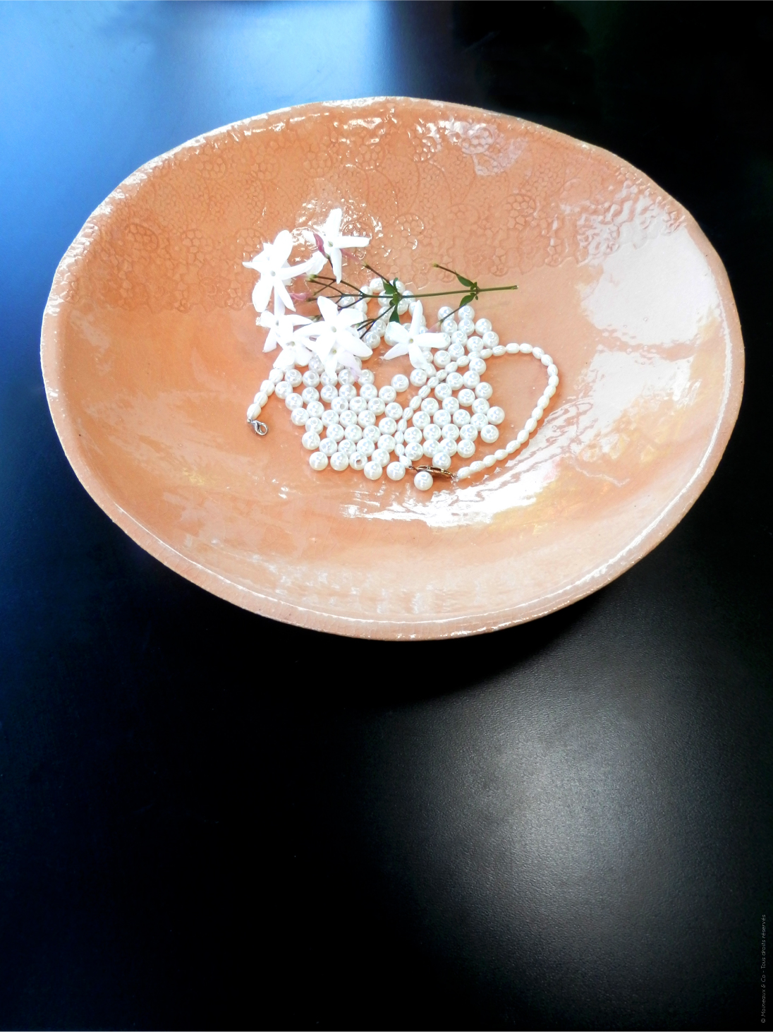 Ces céramiques ont été réalisées avec de la faïence rose, et sont recouvertes d’un émail transparent craquelé.