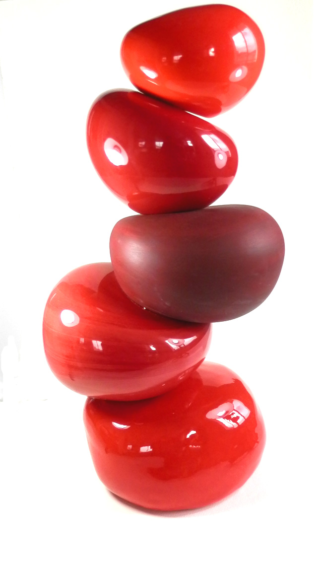 Et voilà c’est parti pour le modelage, l’évidage, le séchage, la première cuisson, l’émaillage et la deuxième cuisson. Et voici le cinquième galet achevé !