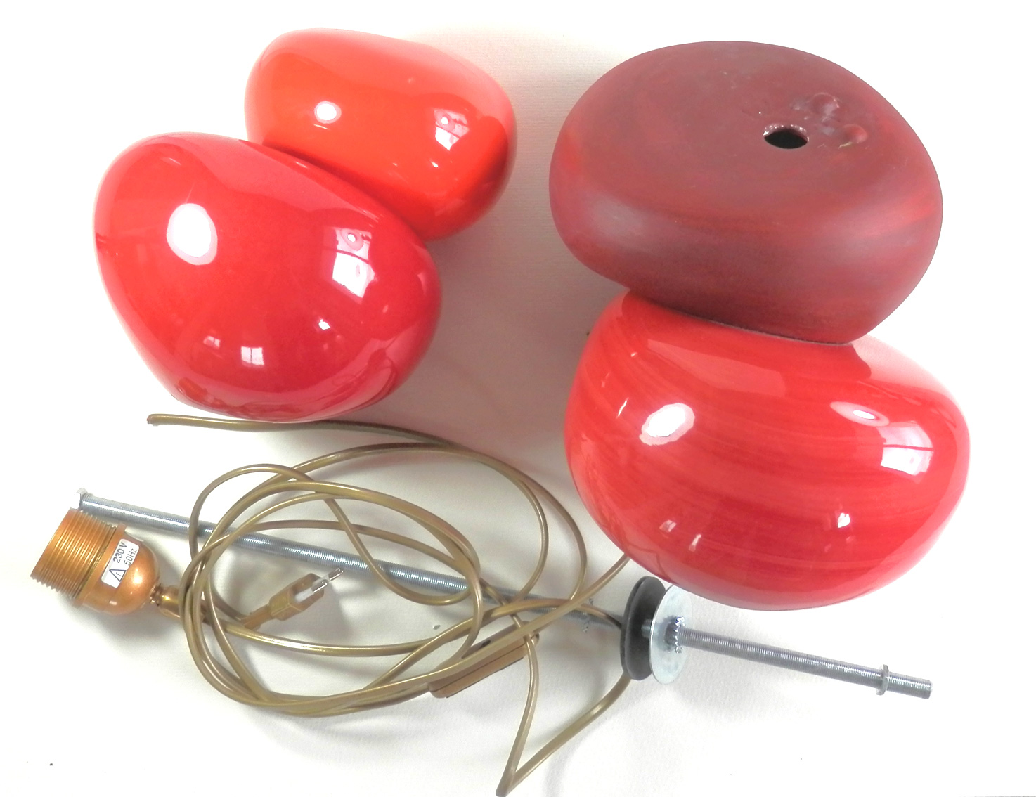 Il y a quelques semaines, un Monsieur vient gentiment me voir sur un marché. Il me dit qu’il a une lampe à laquelle il tient beaucoup et que malheureusement elle est cassée… Et oui, c’est une très belle lampe rouge avec cinq galets, et pas de chance, c’est le premier qui soutient le tout qui a été fracturé. Alors le Monsieur me demande : « Pouvez-vous refaire le galet ? « . Moineaux & Co hésite car n’a encore jamais fait ça, mais accepte tout de même ! Quelques semaines plus tard, voici le résultat !