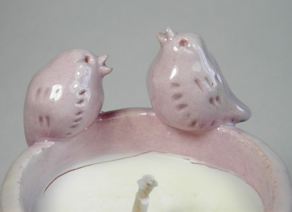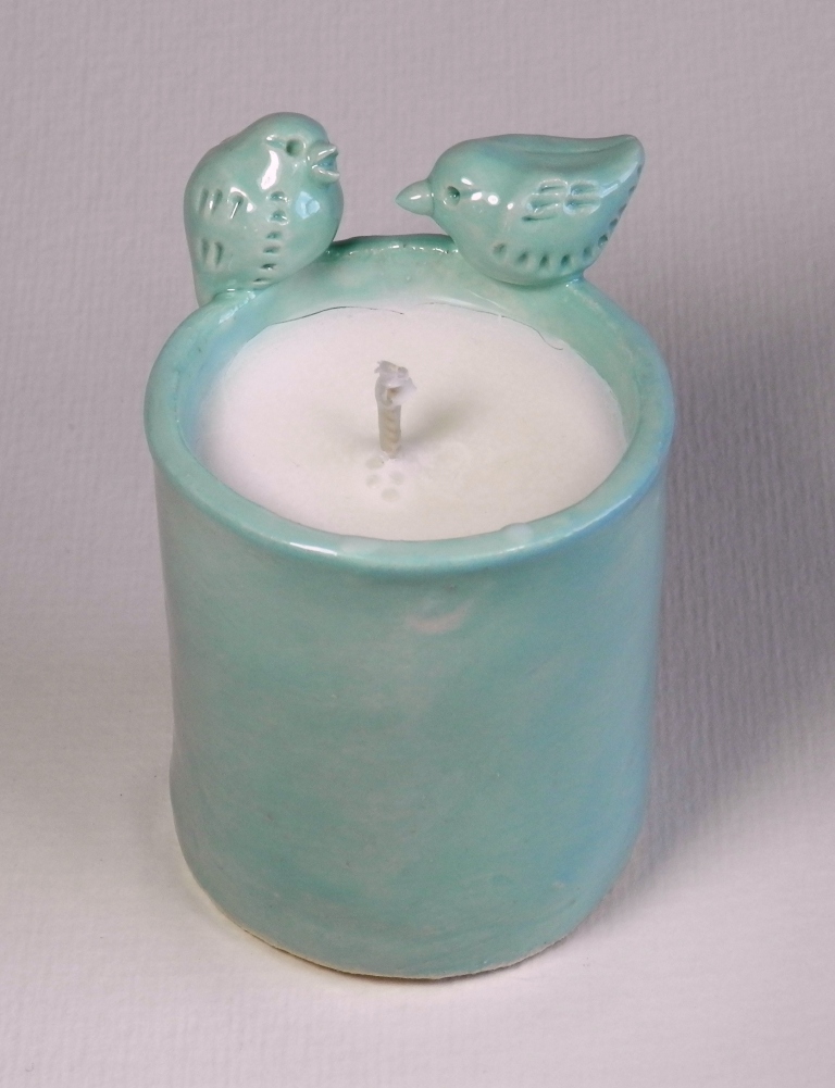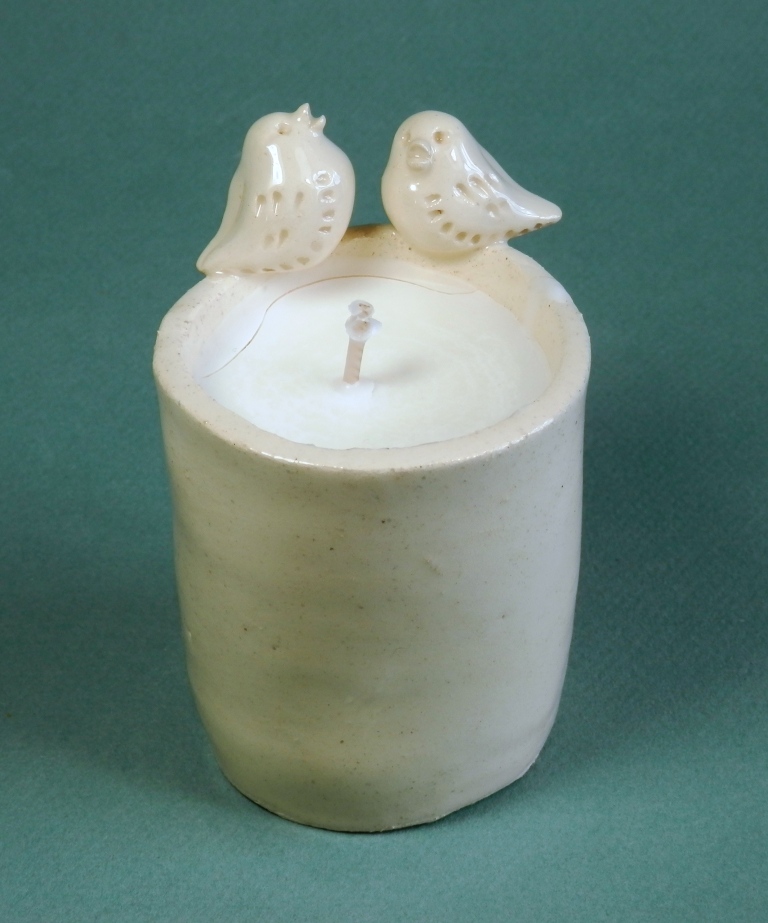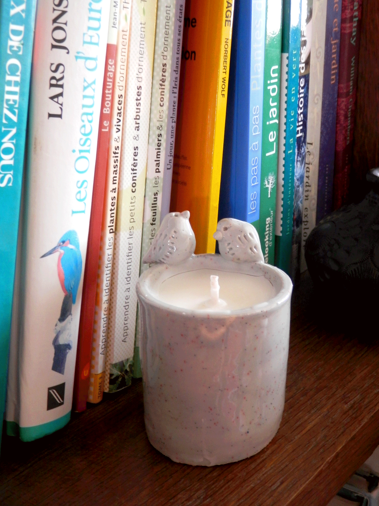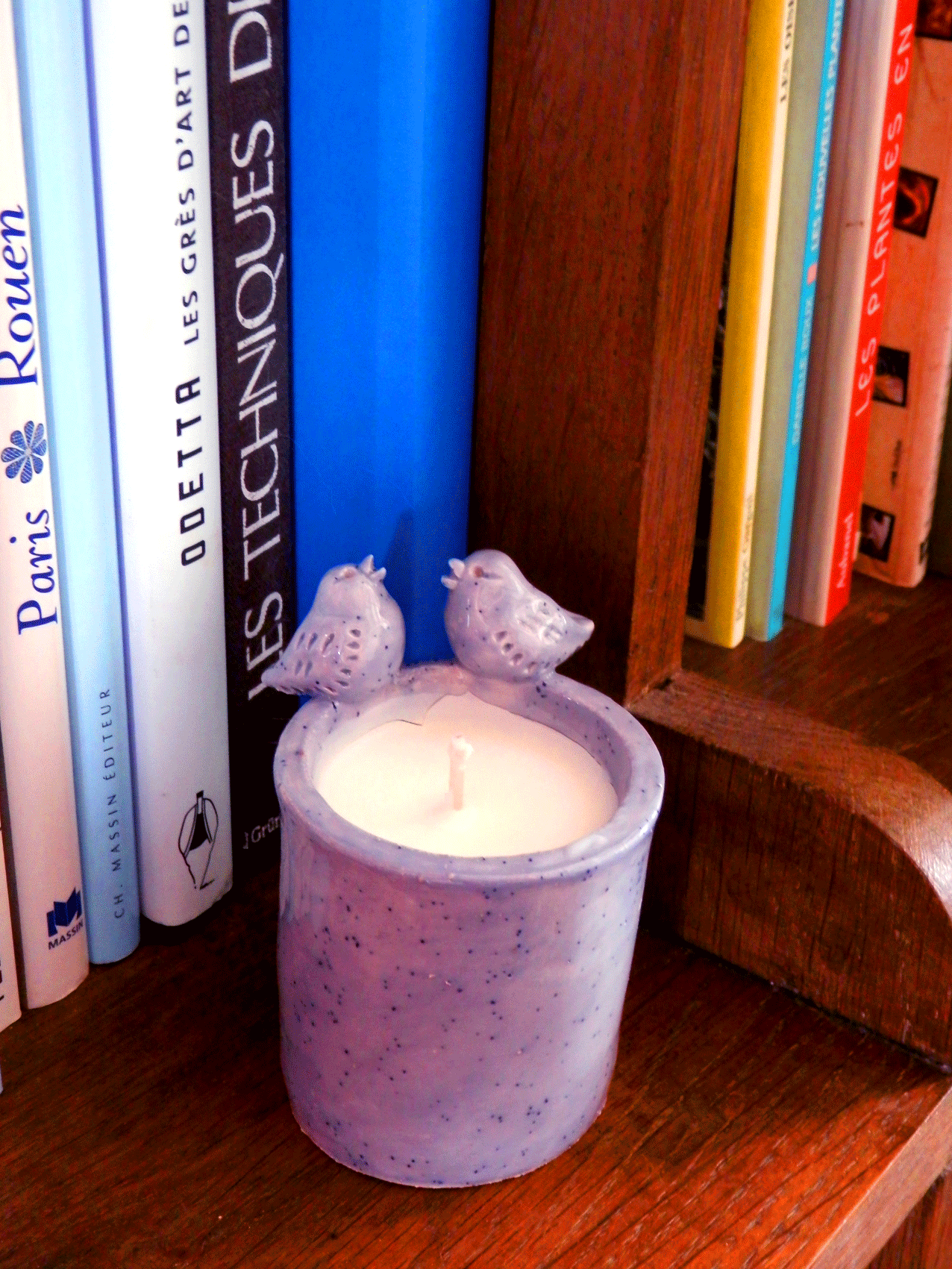 Ces bougies sont entièrement modelées à la main dans de l’argile (faïence), peintes puis émaillées.