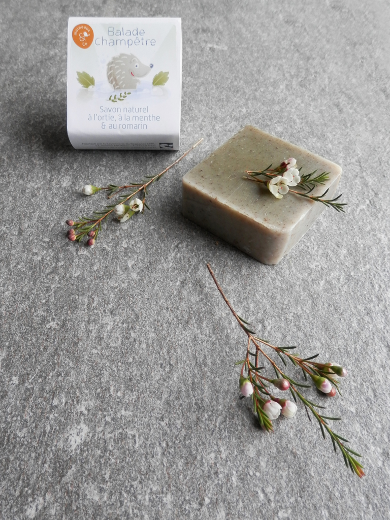 Balade champêtre, savon naturel à l’ortie, à la menthe et au romarin