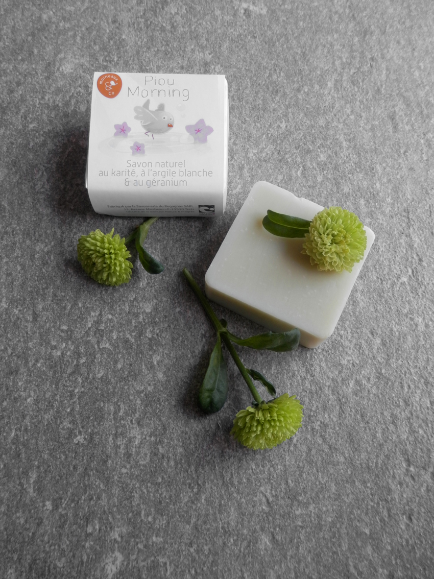Piou Morning, savon naturel au karité, à l’argile blanche et au géranium