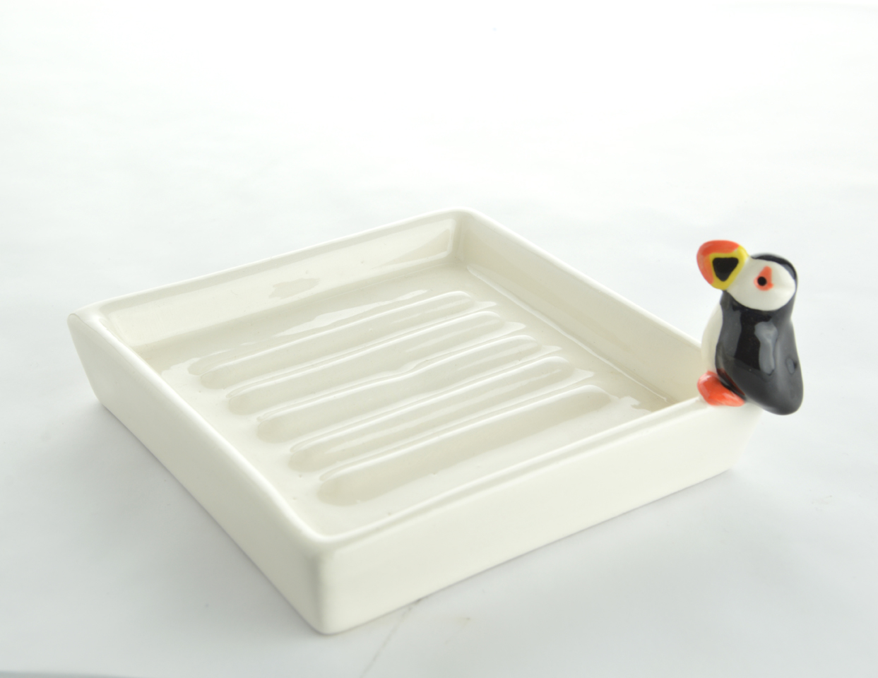 Un porte-savon qui vous emmène sur les bords de l’Atlantique avec cet oiseau marin qu’est le macareux moine. Très pratique avec ses rainures afin de surélever le savon, il ne vous laissera pas indifférent. Un joli cadeau à offrir !