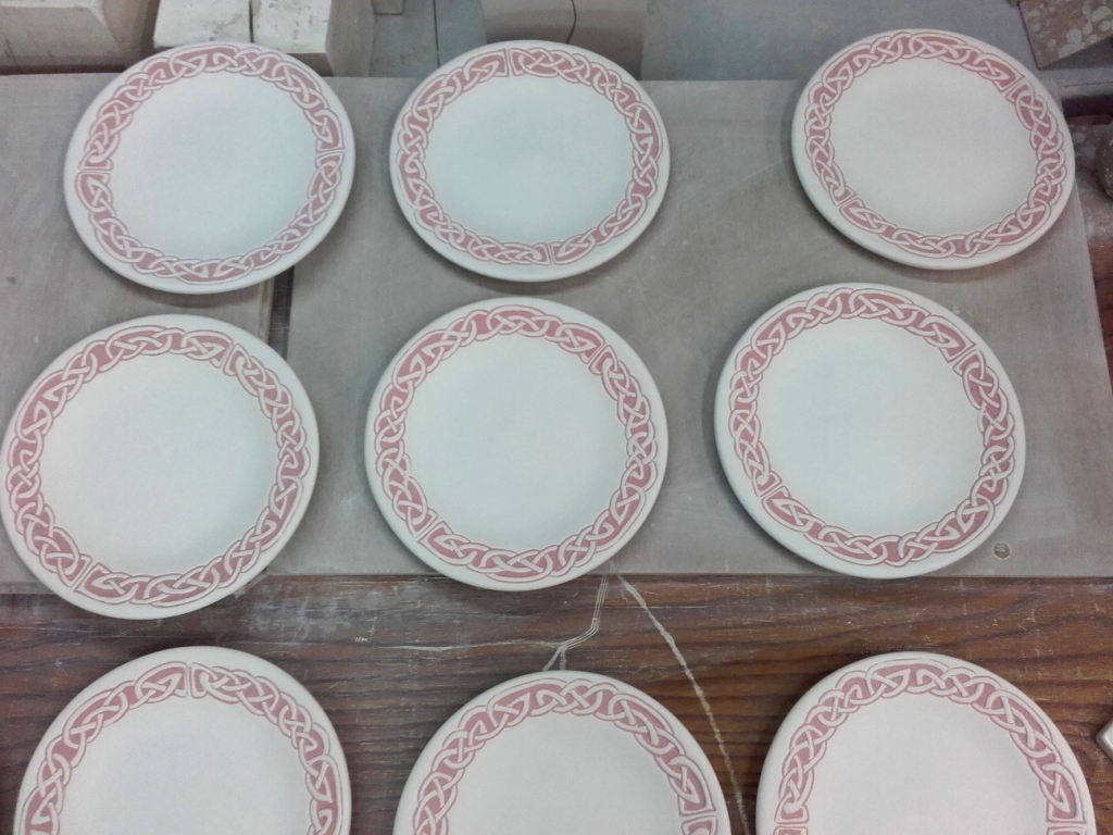 Une fois les faïences cuites, j’ai réalisé plusieurs essais de couleurs avec plusieurs techniques de peinture différentes. Et j’ai demandé à Françoise de choisir ce qu’elle préfèrait.