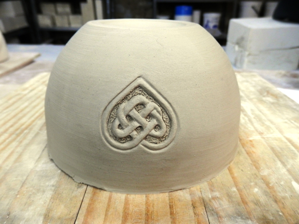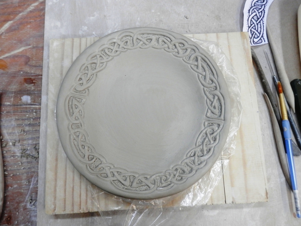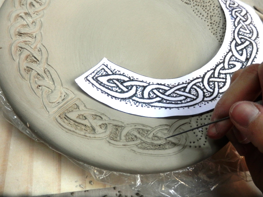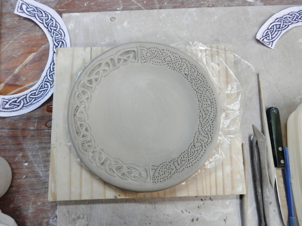 Puis avec une éponge humide, j’enlève le surplus d’engobe, qui reste incrusté dans les parties creuses.