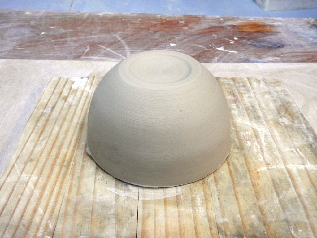Modelage de la tasse à l’aide du tour. Elle reste à l’envers pour que je puisse la mouler plus tard.
