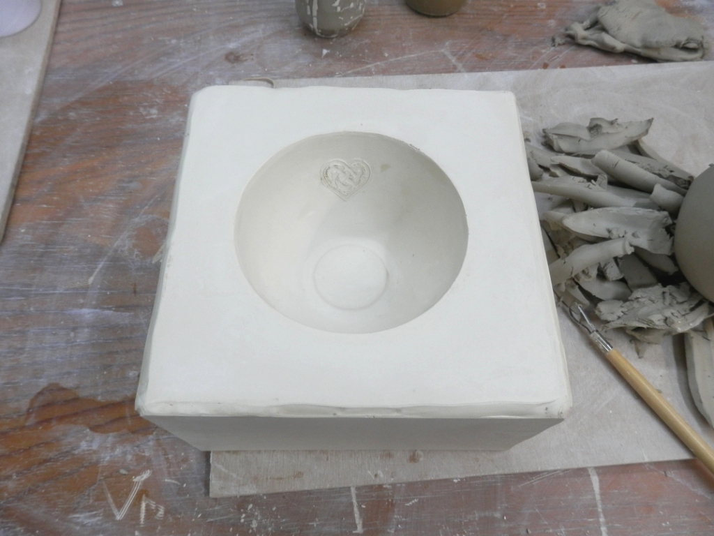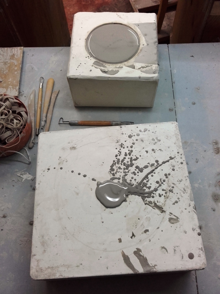 Une fois mes moules bien secs, j’ai enfin pu couler les premières pièces à l’aide de barbotine (argile liquide).