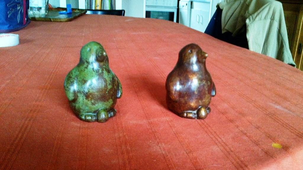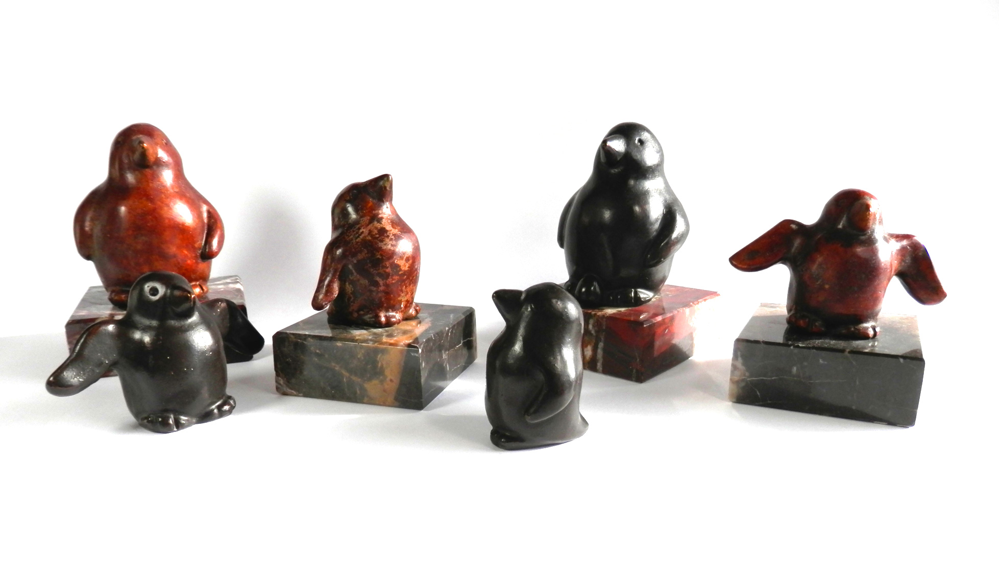 Ces pingouins ont été modelés en céramique dans notre atelier, puis coulés en bronze en Belgique.